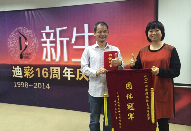 生命在于運(yùn)動(dòng),體育洋溢青春。在這秋風(fēng)送爽,丹桂飄香時(shí)節(jié),讓我們備受矚目的“2014迪彩杯羽毛球爭(zhēng)霸賽”也圓滿的畫上了句號(hào)。在此次賽事中分別設(shè)立了冠亞季(團(tuán)體獎(jiǎng)、男子單打、女子單打)三大獎(jiǎng)項(xiàng),頒獎(jiǎng)典禮于11月3日在公司總部培訓(xùn)室舉行,頒獎(jiǎng)嘉賓由許桂萍董事長(zhǎng)、曾佑春工會(huì)主席擔(dān)任。
