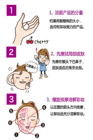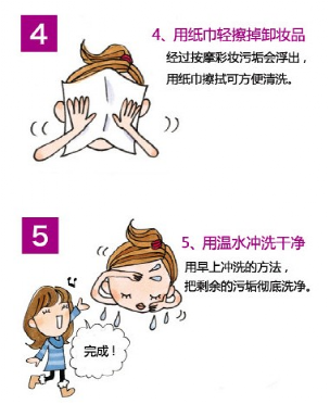 晚上洗臉重點:徹底卸妝并按摩皮膚促進(jìn)新陳代謝。