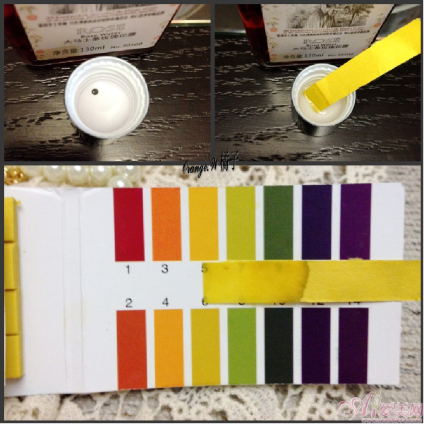 拿試紙來測測看,可以看出結(jié)果在5,弱酸性的PH值很親膚。
